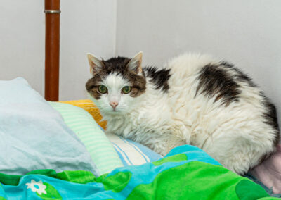 Porzucone, niechciane, niekochane u niej znalazły spokój i miłość. W chwili obecnej w przytulisku przebywa ponad 20 kotów (głównie koty „pośmiertne”) i jak mówi pani Anna: “za każdym z nich stoi nieszczęśliwa historia”... To jednak nie wszystkie zwierzęta którymi opiekuje się pani Ania. Na co dzień dokarmia około 200 kotów wolnożyjących, oraz wspomaga karmą wielu tzw. społecznych karmicieli.