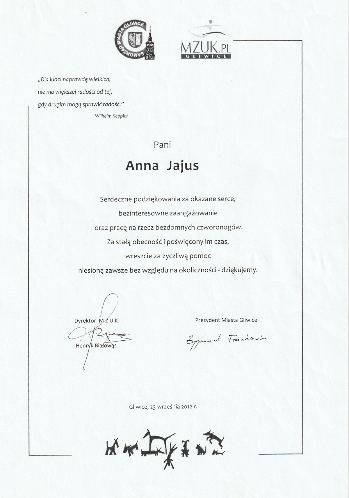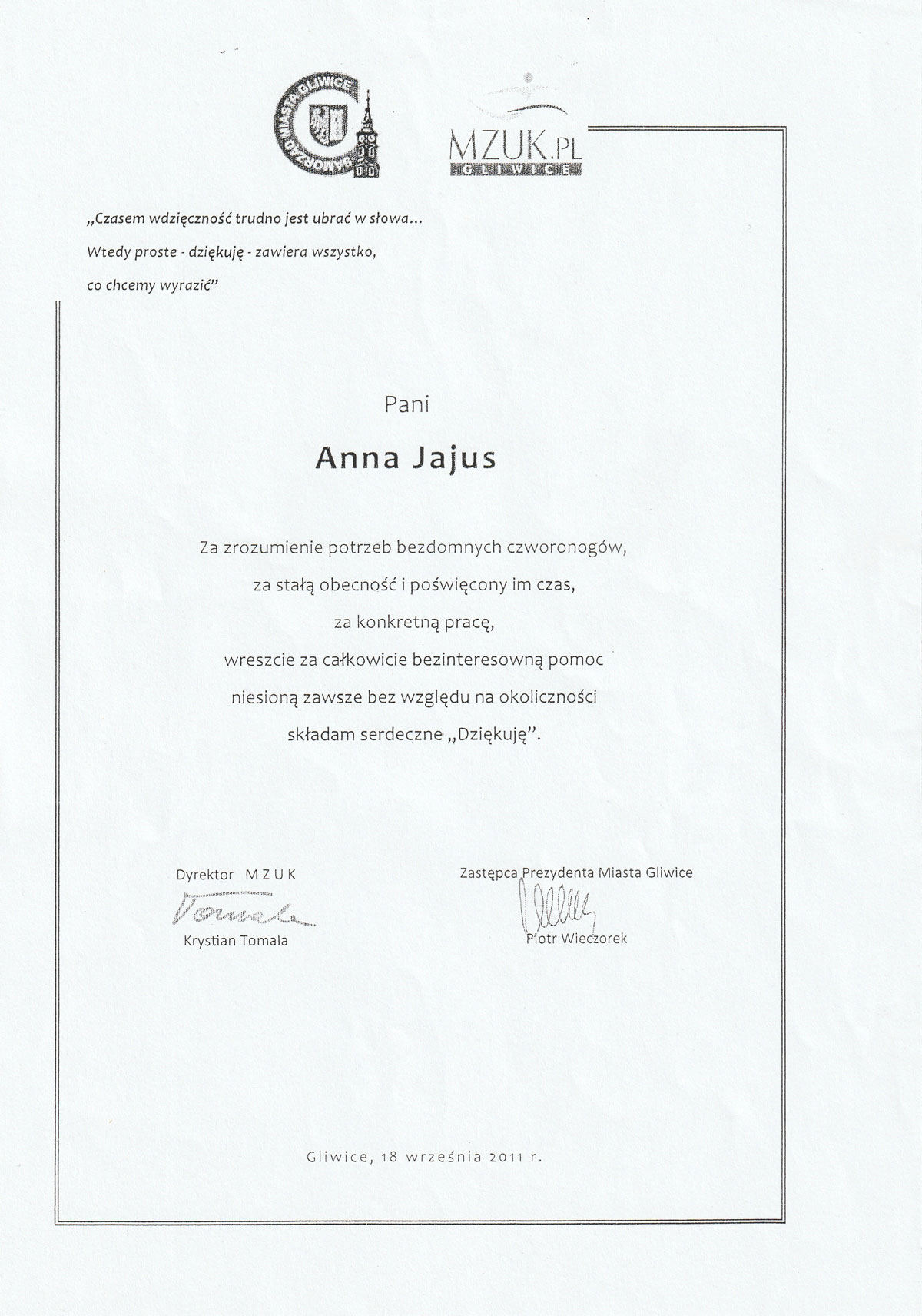 Bardzo mi zależy na znalezieniu sponsora – opiekuna, osoby kompetentnej w prowadzeniu moich spraw w sieci internetowej, oraz prawnika, który służyłby mi pomocą w zakresie porad prawnych w mojej działalności na rzecz zwierząt, oraz w rozwiązywaniu problemów natury prawnej.