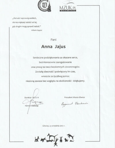 Właśnie w tym dniu ostatecznie spełniło się wieloletnie marzenie pani Anny Jajus o założeniu Fundacji.